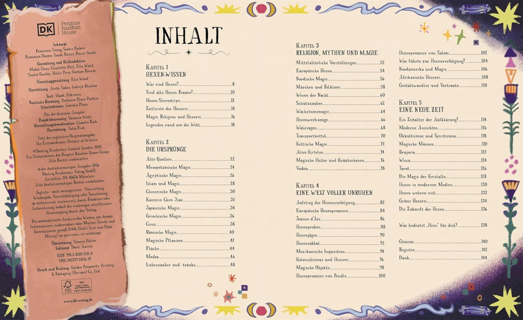 Begib dich auf eine magische Reise und entdecke die faszinierende Welt der Hexen - ihre Geschichte, Legenden und Magie. Dieses aufwendig illustrierte Kindersachbuch nimmt dich mit zur altägyptischen Heka, keltischer Magie, Voodoo, der südamerkanischen Brujería und dem modernen Kult der Wicca. Begegne mythischen Frauenfiguren wie Baba Jaga, Circe oder Jeanne d’Arc, tauche ein in geheimnisvolle Zaubersprüche, Zaubertränke, Prophezeiungen und die Kunst des Wahrsagens. Erkunde die bewegte Geschichte der Hexen, von inspirierenden Frauen bis zur Hexenverfolgung. Dieses Buch vereint Mythologie, Märchen, magische Wesen, Okkultismus, Spiritualismus und Naturmagie zu einer Welt voller Zauber und übersinnlicher Geheimnisse. Perfekt als Geschenk für alle, die sich verzaubern lassen wollen.