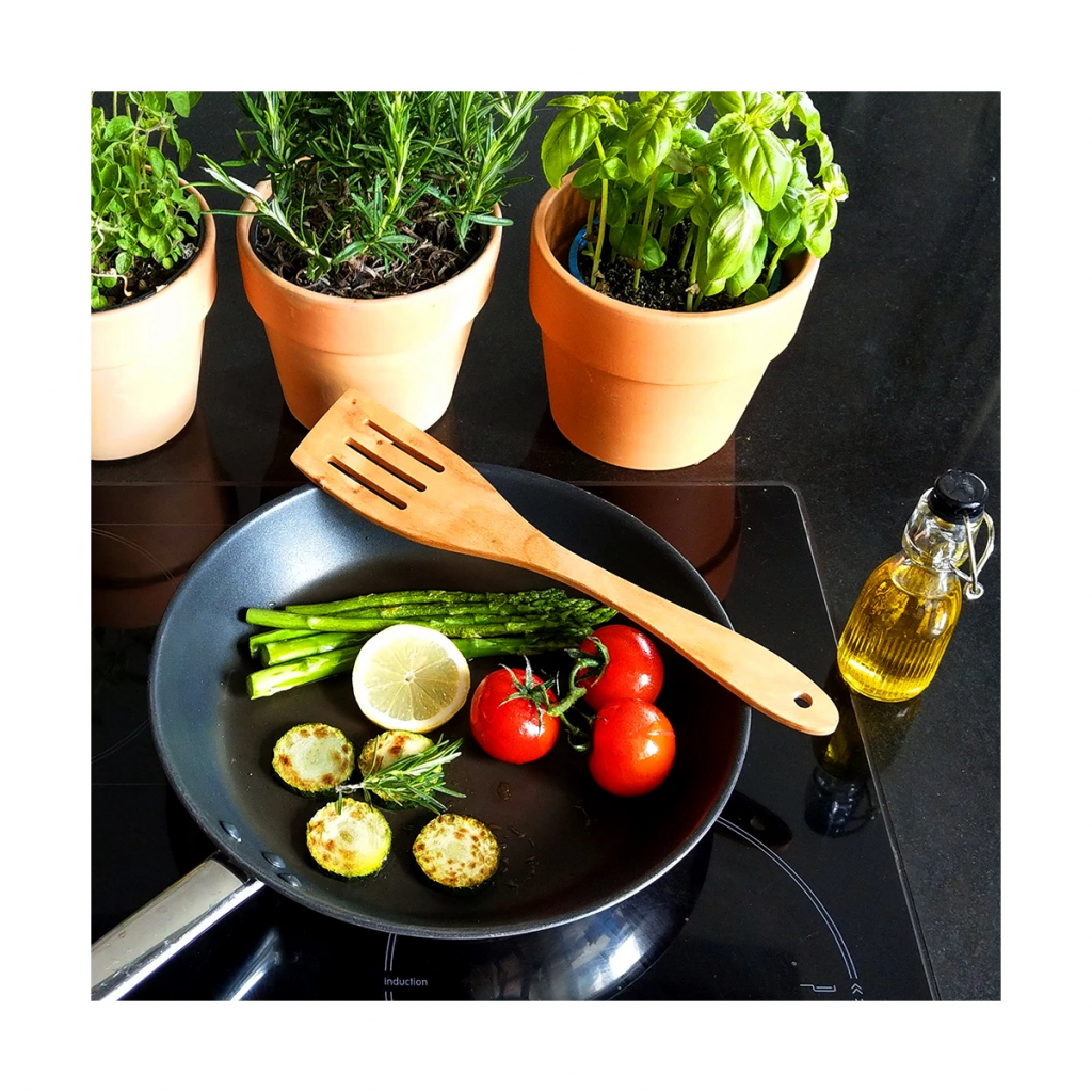 Die Herstellung des Pfannenwenders erfolgt sehr aufwendig in Handarbeit. Mit unserem Pfannenwender verbannen Sie jegliches Plastik aus Ihrer Küche. Aus reinem Kirschenholz/Buchenholz bestehend, sind unsere Küchenutensilien aus Holz extrem robust, hitzebeständig und völlig schadstofffrei. Die elegante Maserung macht jeden Pfannenwender zu einem echten langlebigen Unikat, der ihnen lange Freude beim Wenden von Fleisch oder Gemüse machen wird.