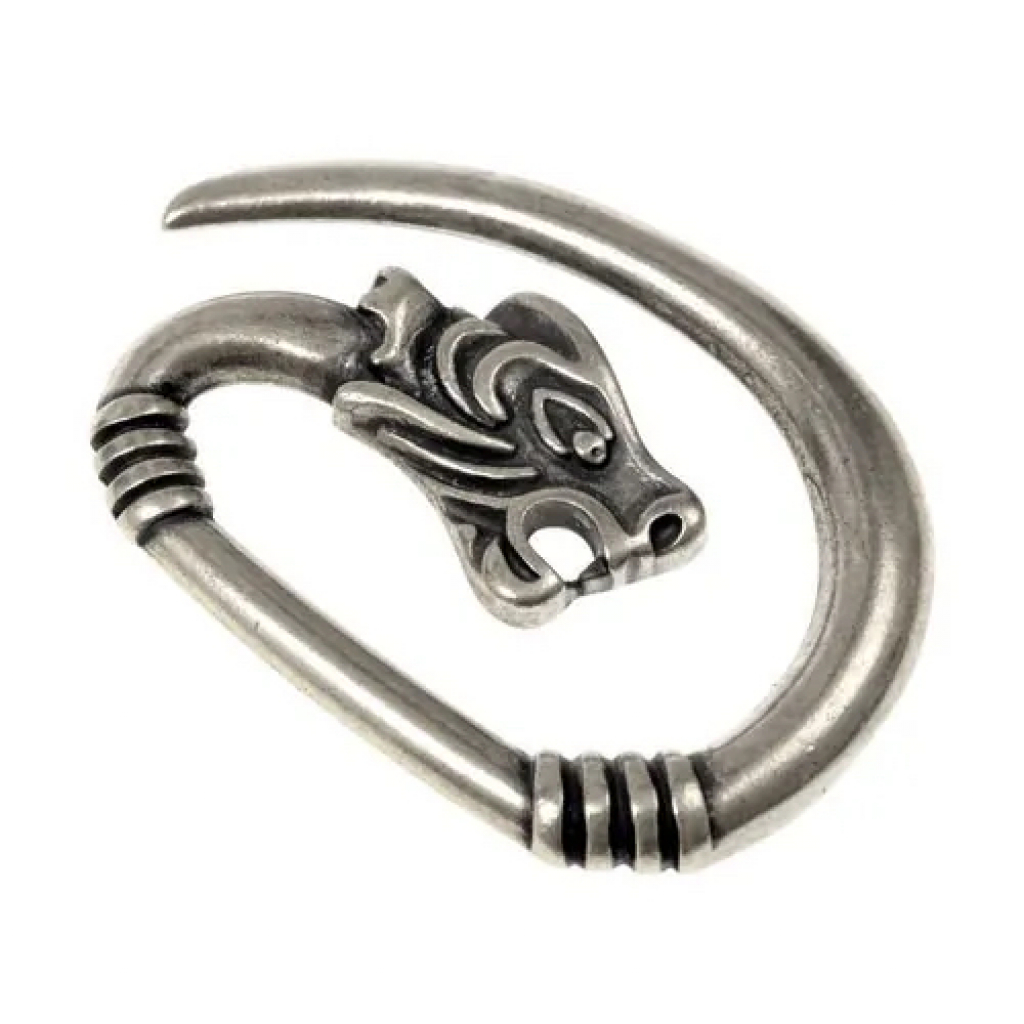 Haken-Verschluss in Form eines Wolfkopfes, geeignet als Gewandschließe oder als Gürtelschnalle für 3 cm breite Riemen.